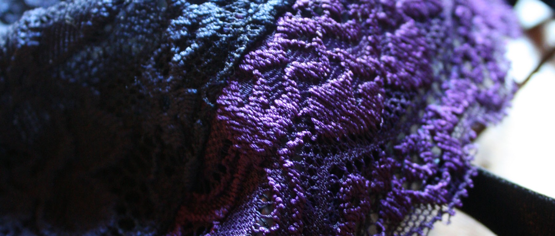 The midnight blue lace and the deep royal purple are from Lace and Trims on etsy. I backed the lace with black PowerMesh, and I used black strapping.